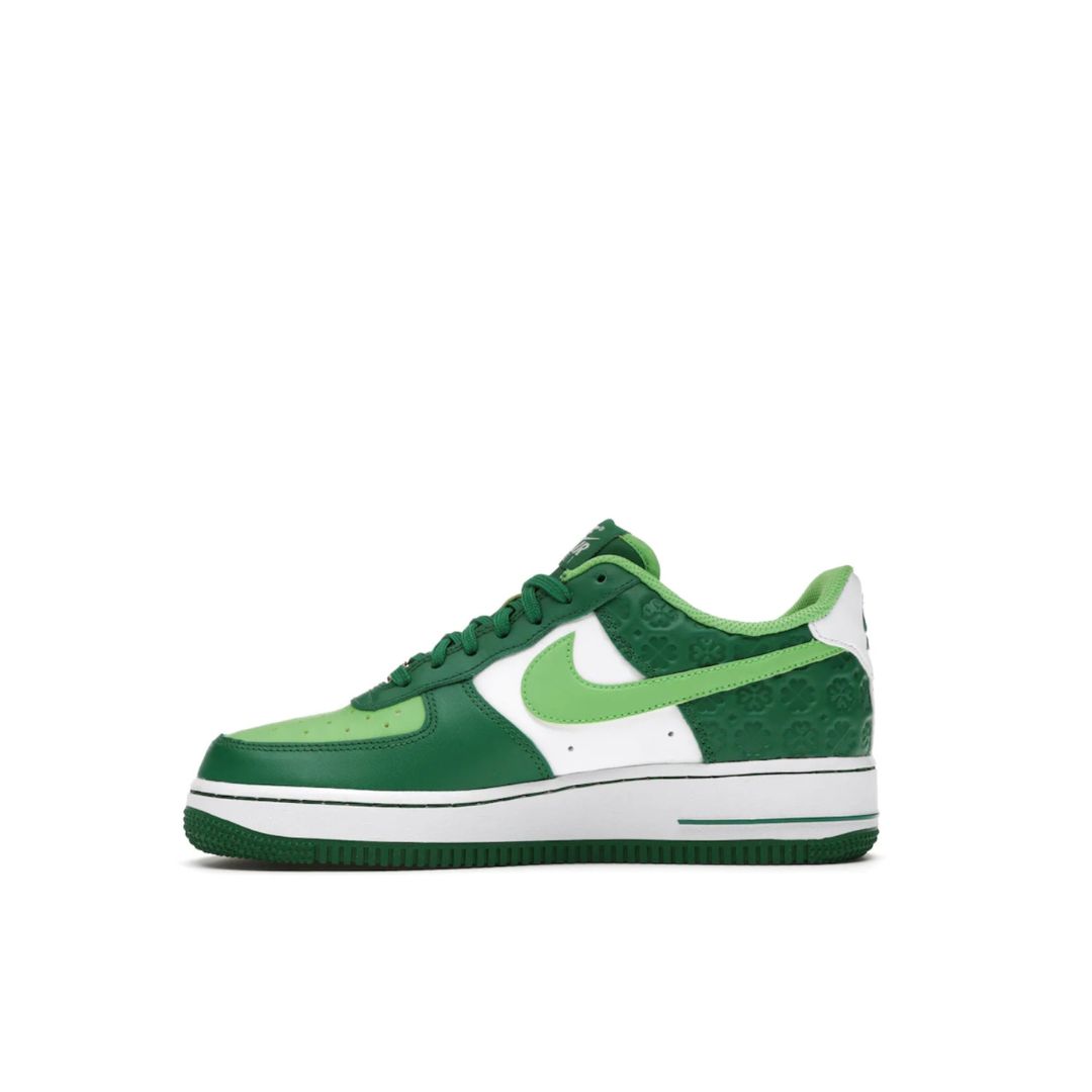 Celebrate luck, heritage, and standout style with the Air Force 1 St. Patrick’s Day edition. Dressed in a festive mix of Mean Green, Pine Green, and crisp white leather, this pair brings bold energy and premium detail to a classic silhouette. Subtle four-leaf clovers on the ankle wrap nod to Irish tradition, while gold lace dubraes and a green woven tongue label add that lucky touch.