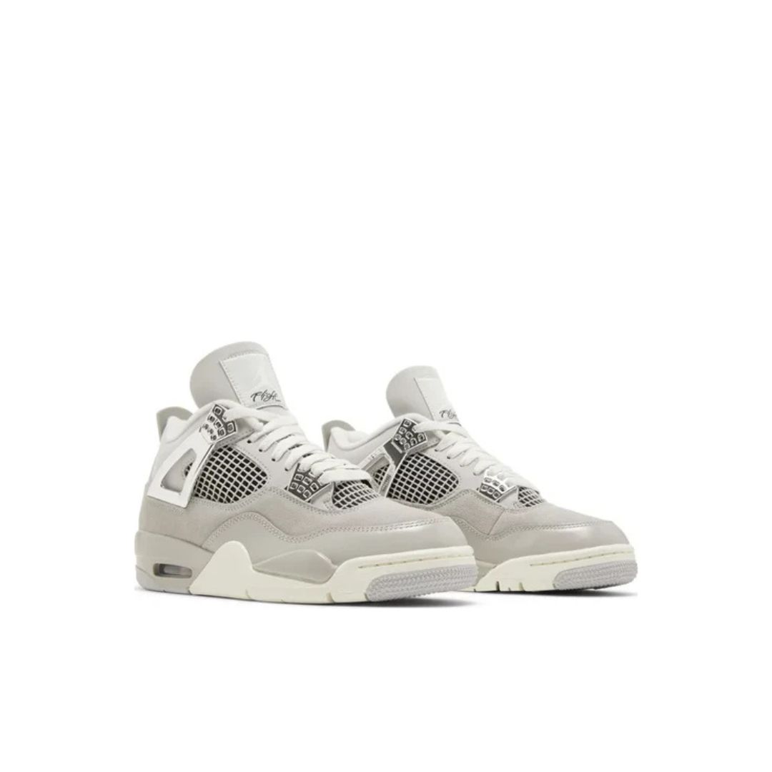 The Air Jordan 4 “Frozen Moments” delivers a fresh women’s-exclusive colorway that celebrates the legendary early moments of Michael Jordan’s career, including the iconic 1989 shot against the Cavaliers. Dressed in a Light Iron Ore, Sail, Neutral Grey, Black, and Metallic Silver palette, the upper features premium grey materials complemented by Metallic Silver accents on the eyelets, wing flaps, and heel Jumpman. A soft Sail midsole and grey rubber outsole round out the design, complete with a special hangtag for a final touch of heritage.