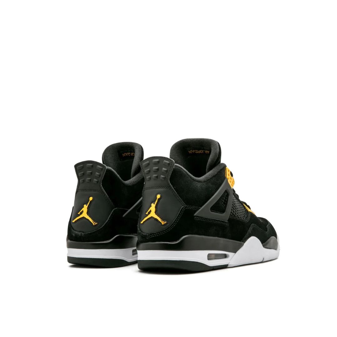The Air Jordan 4 Retro “Royalty” brings a luxurious edge to a court classic. Originally designed by Tinker Hatfield and worn by MJ in the 1988–1989 season, this updated take features rich black suede uppers paired with metallic gold accents on signature elements like the eyelets and heel tab. The blend of premium materials and bold contrast gives this iconic silhouette a regal presence both on and off the court.